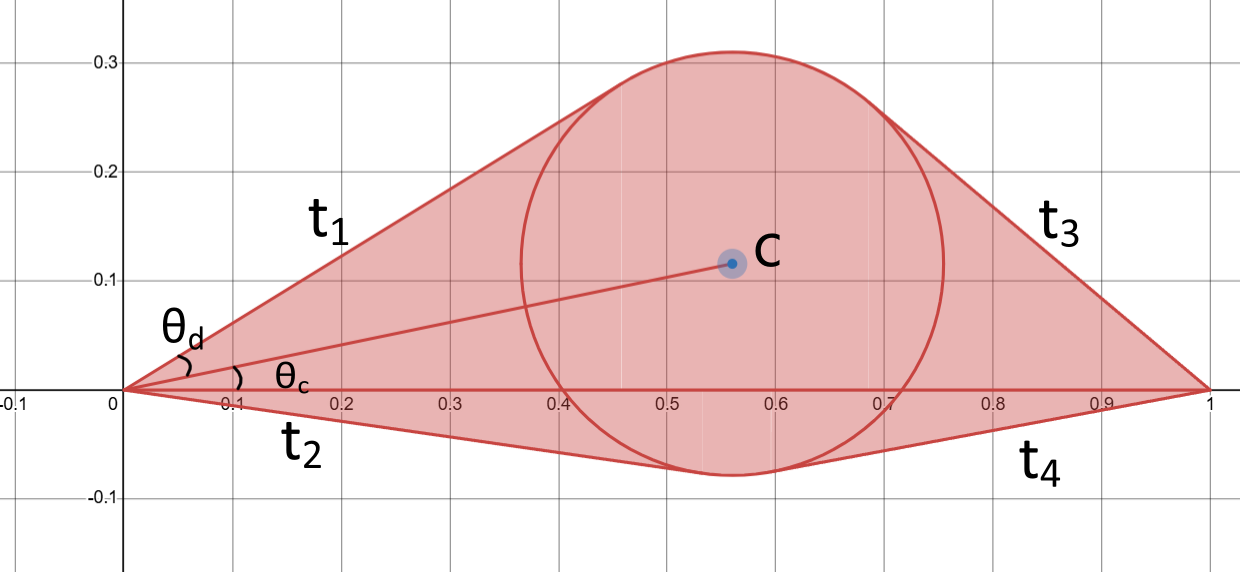 | \(t_4\) | The line segment passing through \((1,0)\) at an angle of \(\theta_c’ + \theta_d’\) with length \(\sqrt{d’^2-r^2}\) |