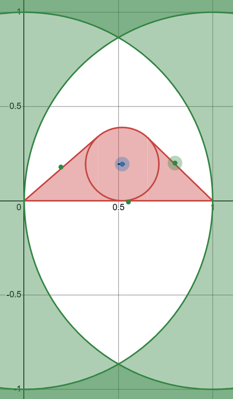 $$\left(0, \frac{\sqrt{1+4r^2}}{2}\right)\approx\left(0,0.536\right)$$ $$\left(\frac{1}{5}, \sqrt{0.2+r^2}\right)\approx\left(0.2,0.488\right)$$ $$\left(\frac{1}{3}, \sqrt{2/9+r^2}\right)\approx\left(0.333,0.510\right)$$