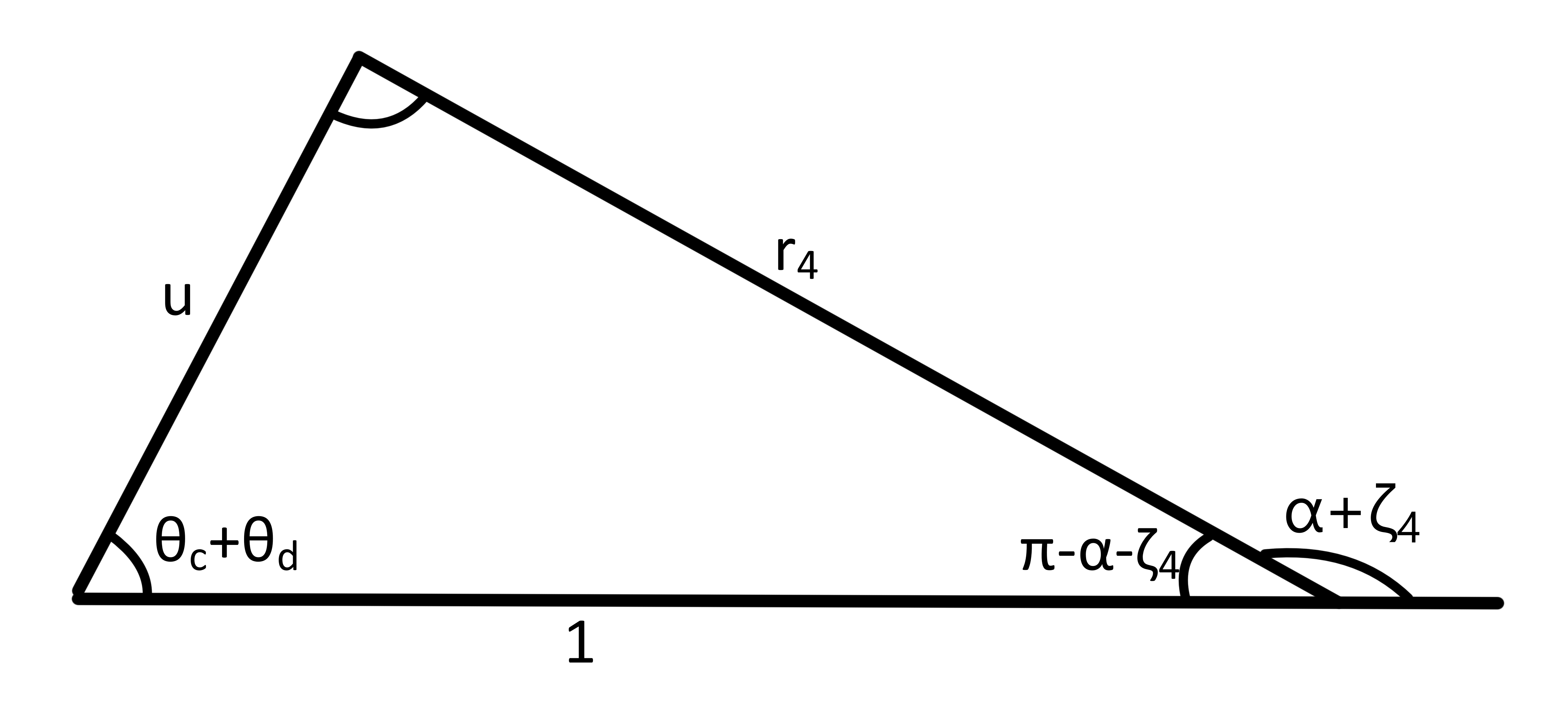 $$\sin{\left(\pi-\alpha-\zeta_4+\theta_c+\theta_d\right)} = \frac{\sin\left(\theta_c+\theta_d\right)}{r_4}$$