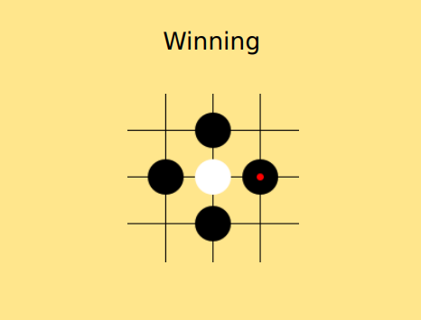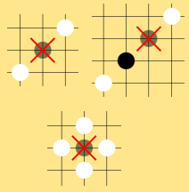 Examples of illegal movesThere are two exceptions to this rule. First, it is always legal to play a move that wins the game, even in situations where the placed stone might be captured, or that cause an apparent victory for the passive player.