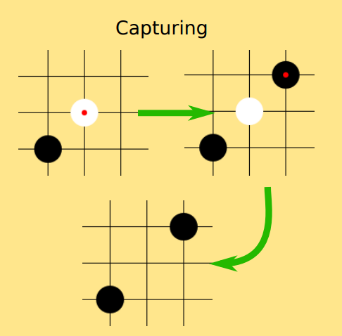 If black places in the location pictured here, the white stone is removed.