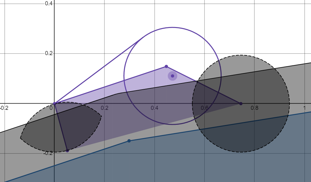 where \(m\) is the slope from the previous equation. Because the center of \(M\) must be located underneath this, the total possible area for \((a,b)\) is reduced even further.